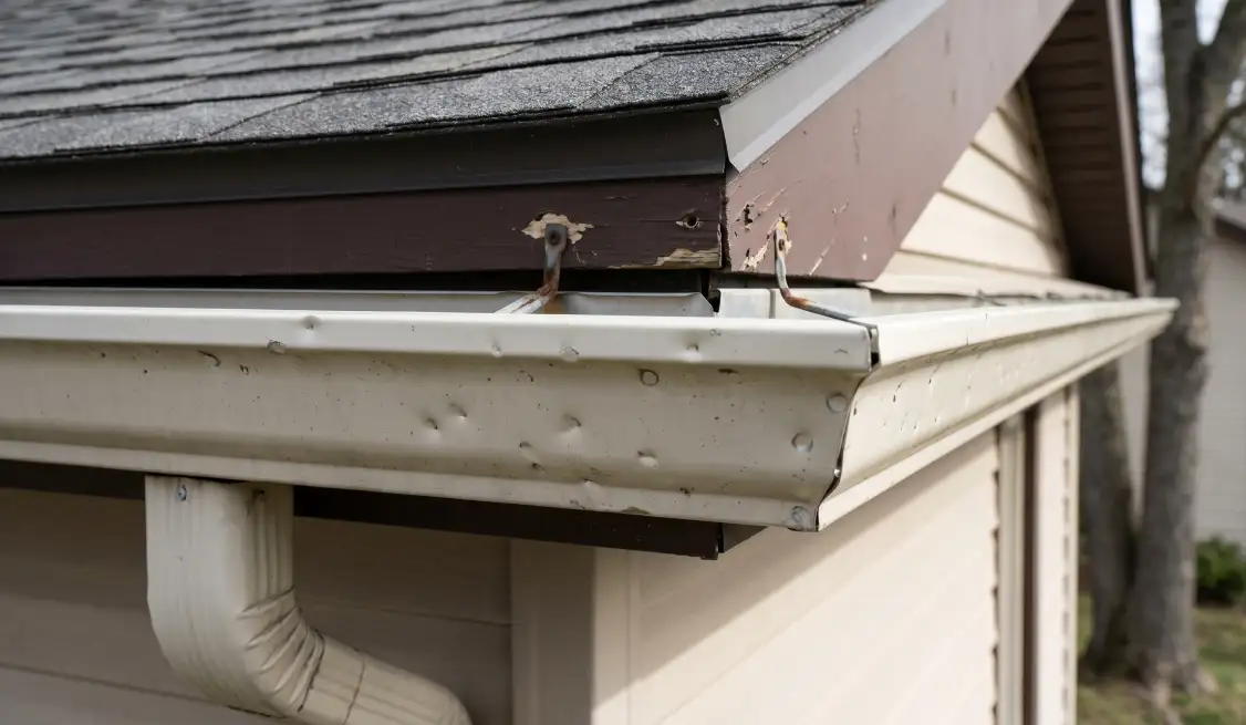 - Gutter detachment: spikes or hangers pulled from the fascia after heavy water load